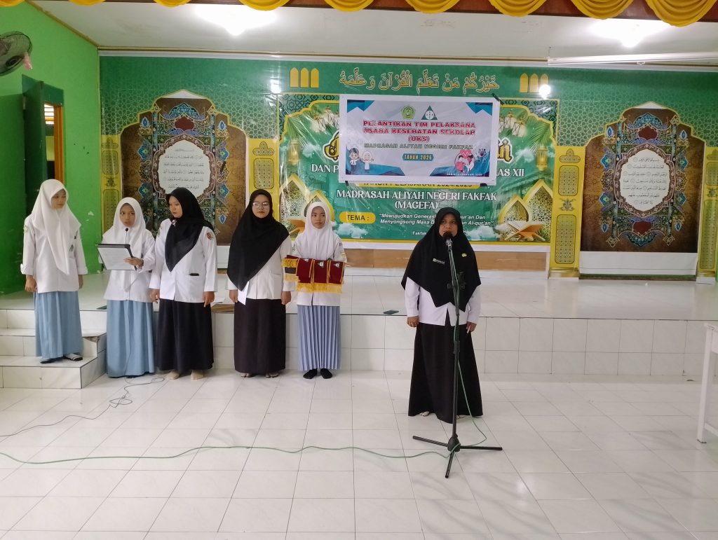 FAKFAK (9/2) – Madrasah Aliyah Negeri (MAN) Fakfak resmi memiliki nakhoda baru untuk Unit Kesehatan Sekolah (UKS). Bertempat di Aula MAN Fakfak pada Senin, 9 Februari 2026, Kepala Madrasah Kalsumi Rumatumia, S.Pd.I., M.Pd. secara resmi melantik jajaran pengurus UKS periode tahun 2026.