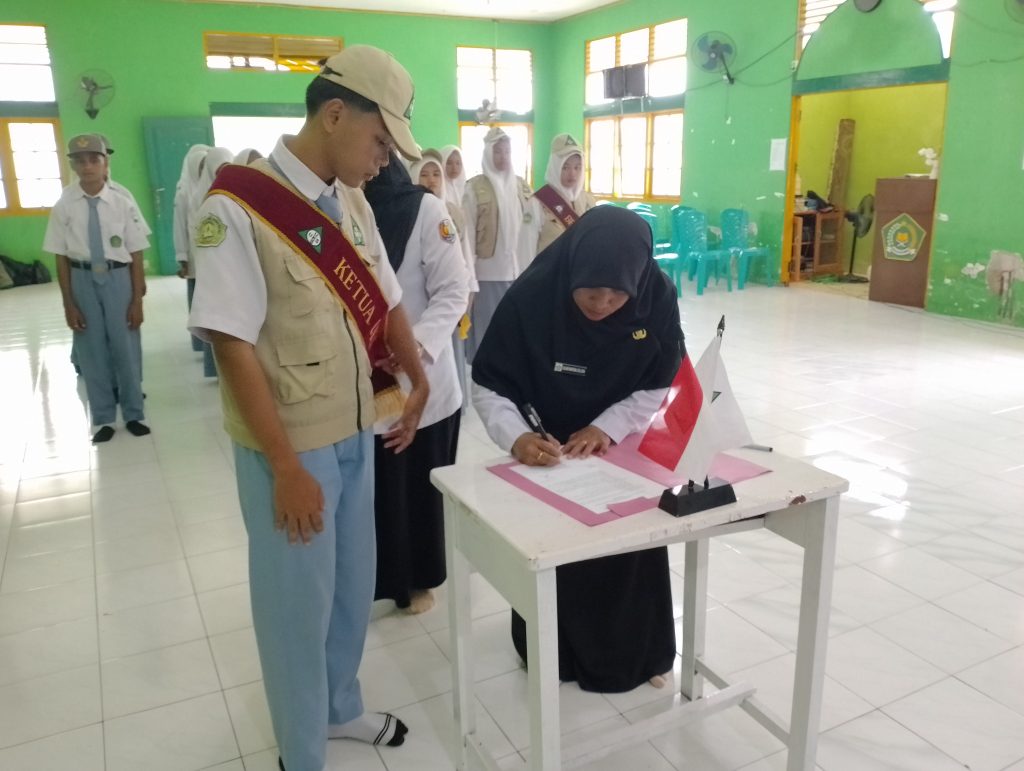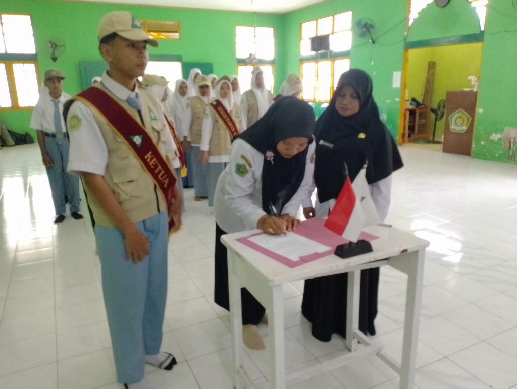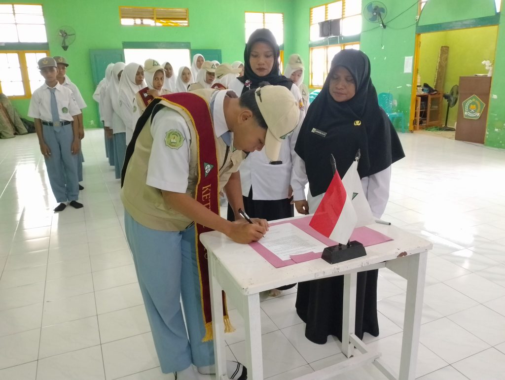 Acara berlangsung khidmat dengan dihadiri oleh Wakil Kepala Madrasah Bidang Kehumasan, Ari Sunyoto, S.Pd., Pembina OSIM, Abdul Rahim Kasim, S.Pd., serta perwakilan pengurus kelas dari setiap tingkatan.